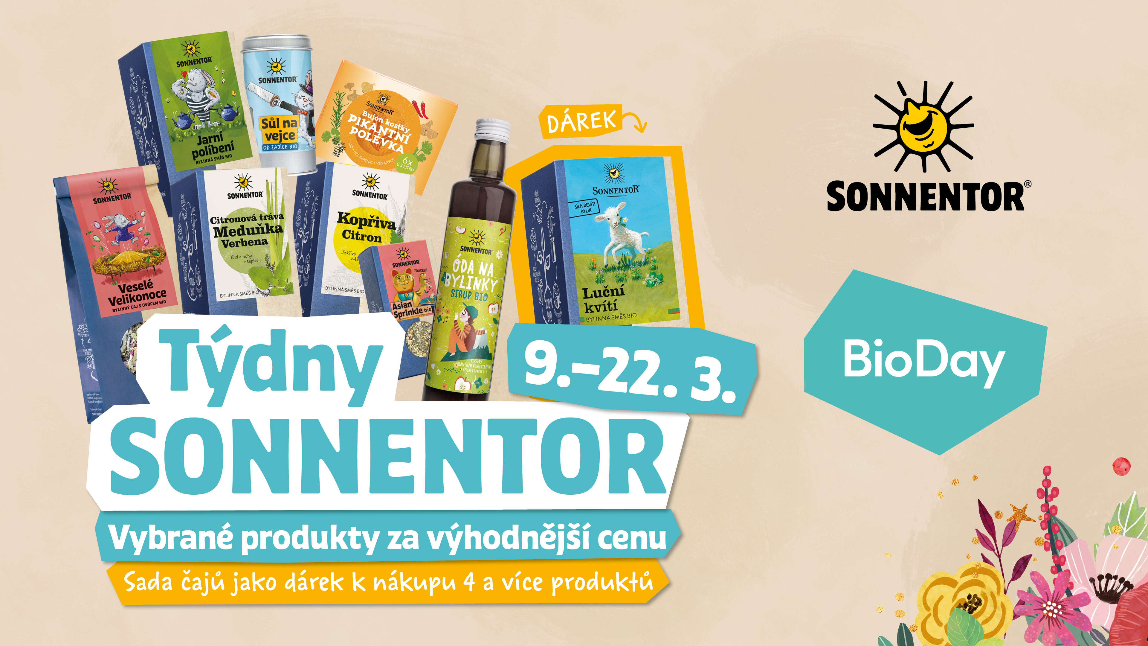 Navštivte prodejnu BioDay v termínu 9.-22.3. a využijte zvýhodněných cen u vybraných produktů Sonnentor. Navíc k nákupu 4 a více produktů Sonnentor obdržíte ČAJ LUČNÍ KVÍTÍ jako DÁREK. Po celou dobu akce také poběží ochutnávka sirupů. Těšíme se na Vás v BioDay Budějovická DBK, Arkády Pankrác a vestibul metra Opatov 😊
